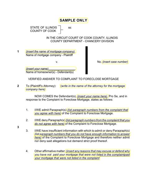 Free PDF SAMPLE FORECLOSURE ANSWER Doc Google eBookstore